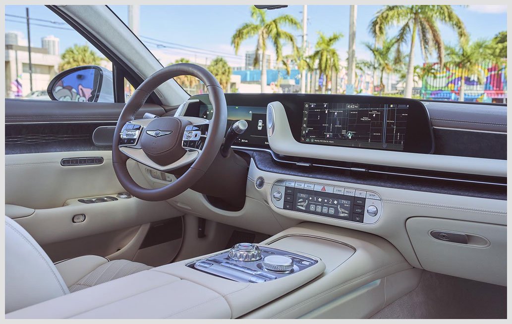 Located on the second-row floor console, this screen allows passengers to manage climate settings, ambient lighting, audio, and their specific seat massage and lumbar functions.